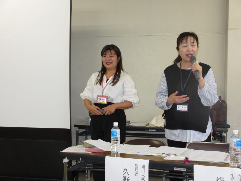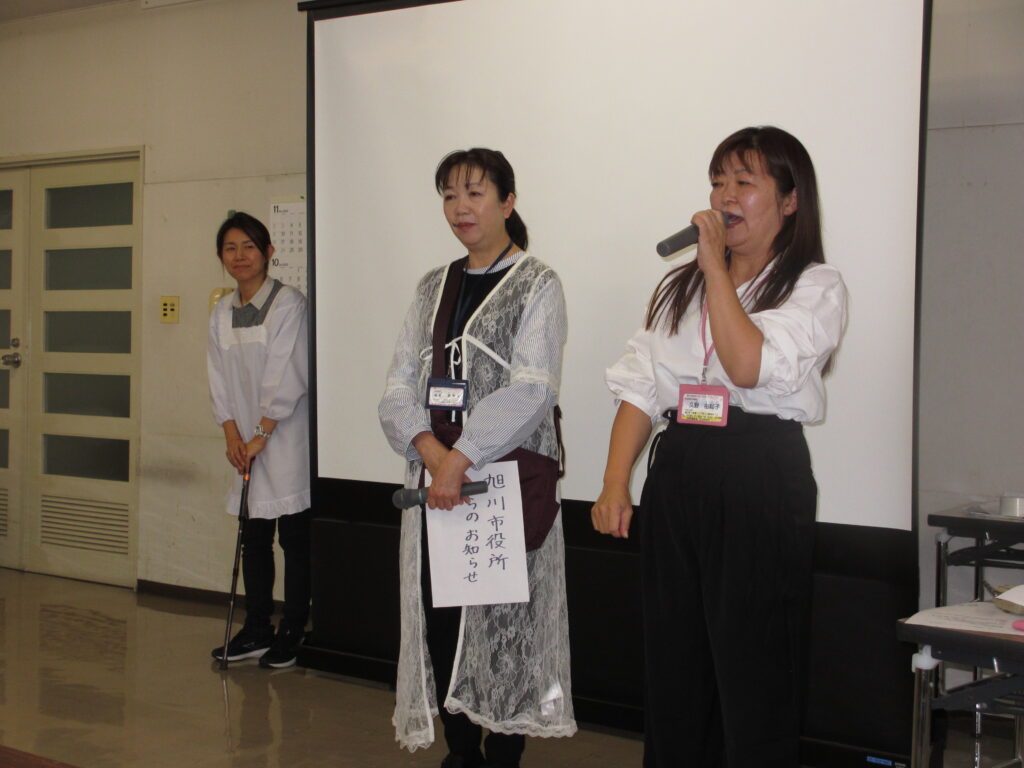 講話では、旭川大成デイサービスセンターの管理者・久野由起子と生活相談員・横倉美智子が登壇し、「住み慣れた地域で元気に暮らそう!」をテーマに、自宅での生活をより豊かに、健やかに過ごすための工夫についてお話ししました。