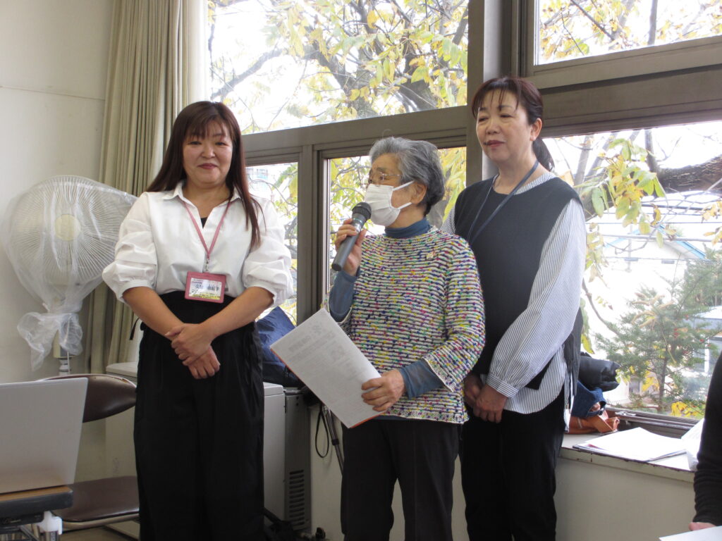 講話では、旭川大成デイサービスセンターの管理者・久野由起子と生活相談員・横倉美智子が登壇し、「住み慣れた地域で元気に暮らそう!」をテーマに、自宅での生活をより豊かに、健やかに過ごすための工夫についてお話ししました。