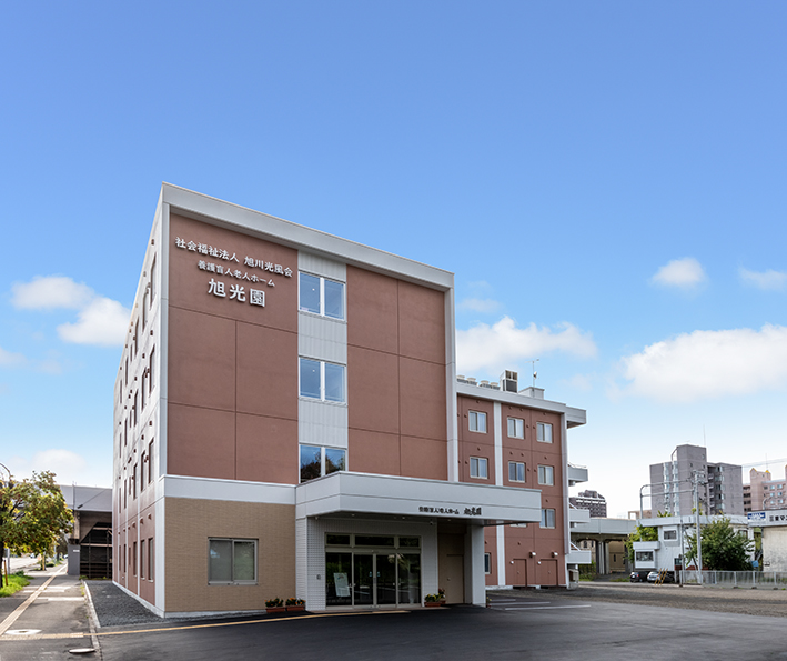 昭和48年に道北地域で初めての視覚障害者施設として「旭川盲人ホーム」を開設し、続いて昭和55年に道内2番目の養護盲人老人ホーム「旭光園」を開園しました。視覚障害を持った方々が安全で安心した生活を送ることができる環境づくりを続けています。周辺には大型スーパーやコンビニエンスストアのほか、昔ながらの市場、郵便局、銀行もある充実した環境です。旭川市は点字ブロックの敷設率が高く、当施設から旭川駅など公共施設まで敷設されています。